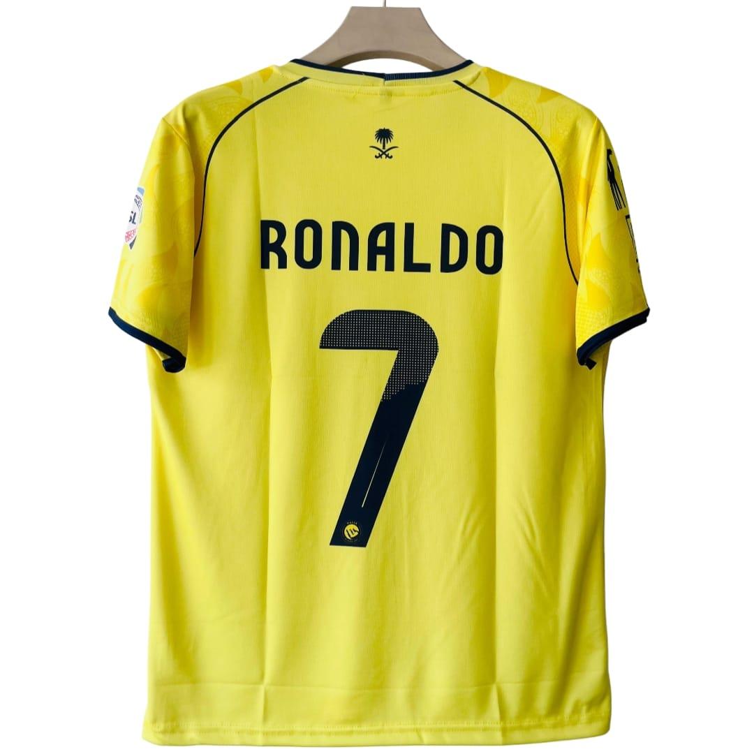 The product is the Al-Nassr FC home jersey. The jersey features a yellow and blue design with the club's crest on the chest.